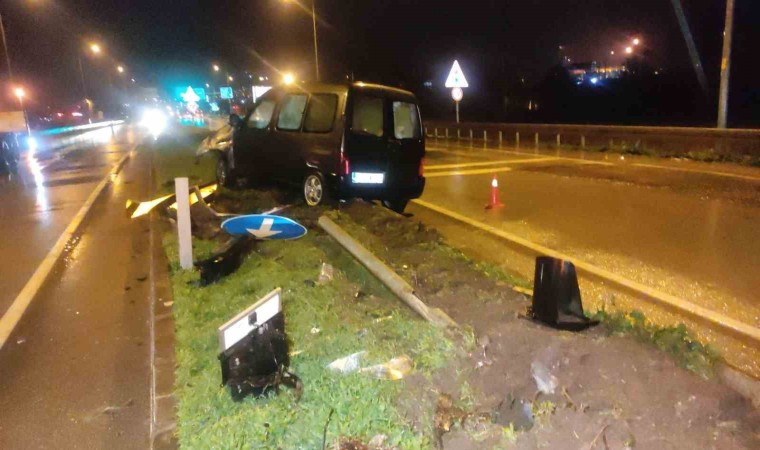 Refüje fırlayan hafif ticari araç trafik tabelalarını devirerek durabildi. Kazada araç sürücüsü Şefik G. ile yanında yolcu olarak bulunan kızı Neşe G. (52) yaralandı. İhbar üzerine olay yerine ambulans sevk edildi. ilk müdahaleleri burada yapılan yaralı baba kız ambulanslarla Orhangazi Devlet Hastanesine kaldırılarak burada tedavi altına alındı. Jandarma ekipleri kaza ile ilgili soruşturma başlattı.