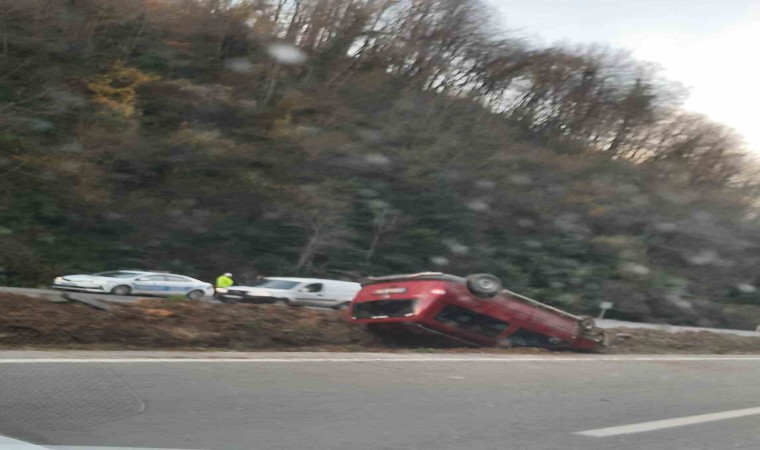 Edinilen bilgiye göre kaza saat 08.00 sıralarında Zonguldak-Ankara karayolu üzerinde yaşandı. Zonguldak istikametine seyir halindeki sürücüsü öğrenilemeyen 67 EY 907 plakalı hafif ticari araç kontrolden çıktı. Taklalar atan araç ters dönerek durabildi. Diğer sürücülerin ihbarı üzerine olay yerine polis ve sağlık ekipleri sevk edildi. İlk müdahalesi yapılan sürücü ve yanındaki yolcu ambulanslarla Atatürk Devlet Hastanesi’ne kaldırıldı. Yaralıların sağlık durumunun iyi olduğu öğrenilirken kaza yapan araç çekici yardımıyla olay yerinden kaldırıldı.