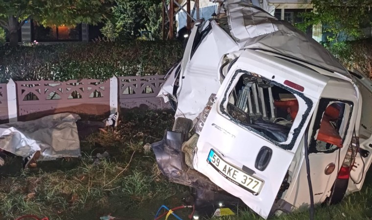 Tekirdağ’ın Saray ilçesinde sürücüsünün direksiyon hakimiyetini kaybettiği ticari araç yoldan çıkarak kaza yaptı. Araçta bulunan iki kişi öldü.