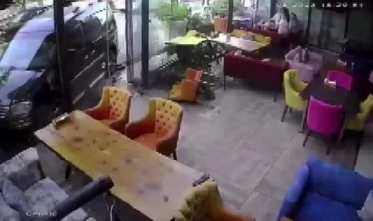 Hafif ticari aracın kafeye girdiği anlar kamerada