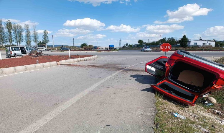 Afyonkarahisar’da hafif ticari araçla çarpışan otomobilin takla attığı kazada 4 kişi yaralandı.