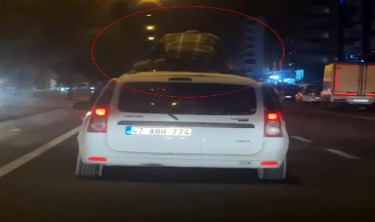Midyat ilçesi Mardin Caddesi'nde, dün akşam, sürücüsünün ismi öğrenilemeyen 47 ABH 774 plakalı hafif ticari aracın üzerine çıkan kişi, bagajın demirlerine tutunup oturarak seyahat etti. Yoldan geçen sürücüler, hem kendi hayatını, hem de trafiği tehlikeye attığı gerekçesiyle bu kişiye tepki gösterdi. O anlar, başka bir aracın sürücüsü tarafından cep telefonu kamerasıyla kayda alındı. (DHA)