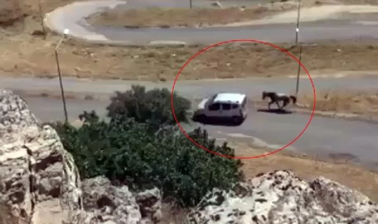 Hafif ticari aracına bağladığı atı koşturarak götürdü