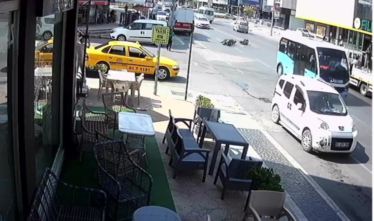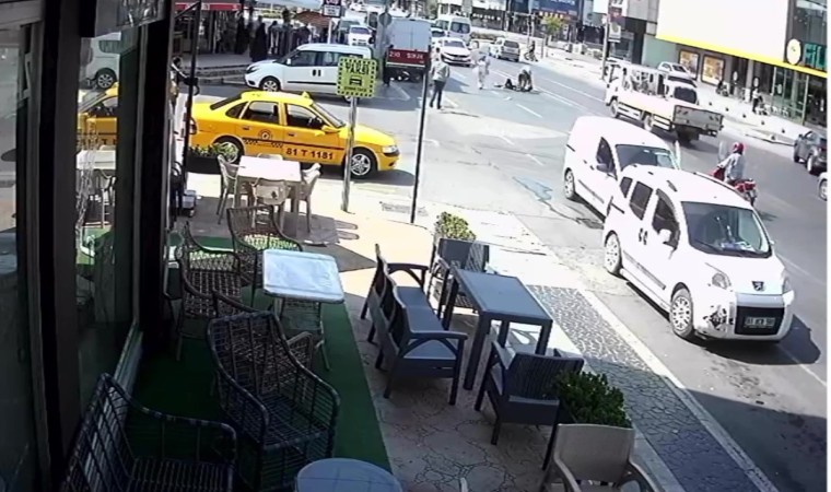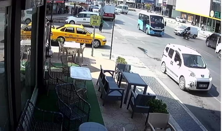 Kaza, merkeze bağlı Atatürk Bulvarı üzerinde meydana geldi. Ara sokaktan Atatürk Bulvarına girmeye çalışan hafif ticari araç yolun ortasına geldiği sırada D-100 karayolu Çoban Kavşağından şehir merkezine ilerleyen motosiklet ile çarpıştı. Kazada otomobile çarpan motosiklet sürücüsü metrelerce yerde sürüklendi. Durumun haber verilmesi üzerine olay yerine sağlık ve polis ekipleri sevk edildi. Olay yerinde yapılan ilk müdahale sonrasında yaralı hastaneye sevk edildi. Meydana gelen olayda yaralının yardımına vatandaşlar koşarken o anlar güvenlik kameralarına yansıdı. Kaydedilen görüntülerde, hafif ticari araç ile motosikletin çarpışması, motosiklet sürücüsünün yerde sürüklenmesi yer alıyor.