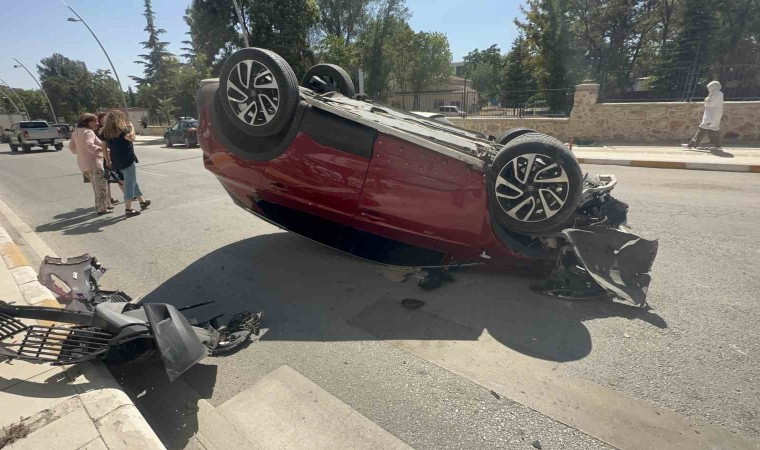 Elazığ’da hafif ticari araçla çarpışan otomobilin takla atması sonucu meydana gelen kazada, 3 kişi yaralandı.
