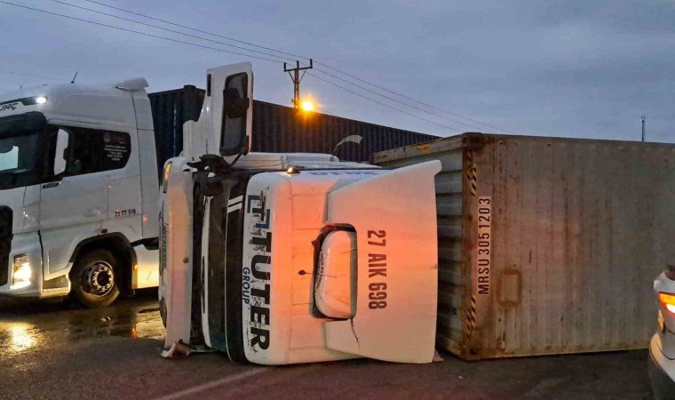 Hatay’da hafif ticari araçla çarpışan tır devrildi, 2 kişi yaralandı.