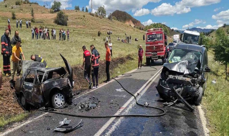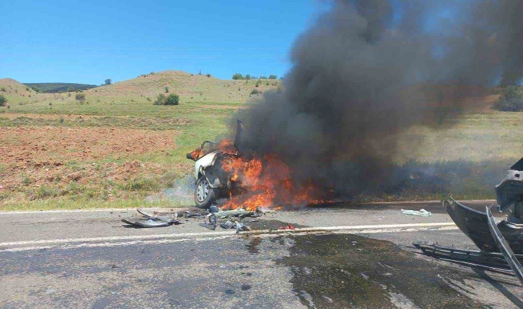 Çankırı’nın Yapraklı ilçesinde hafif ticari araç ile Tofaş marka otomobil alev alev yandı. Kazda kullanılmaz hale gelen Tofaş’taki 1 kişi öldü, 1 kişi ise yaralandı.
