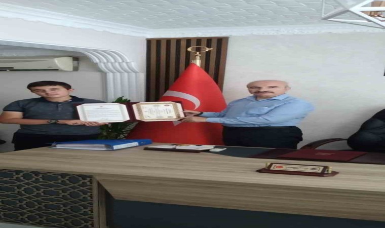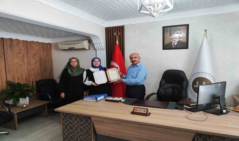 15 Temmuz Şehitler Kur’an Kursu öğrencisi Resul Faruk Kalkan ve Havva Ana Yatılı Kız Kur’an Kursunda hafızlığını Emine Yıldız hafızlık belgelerini Müftü Sebahattin Turan’dan aldılar.
