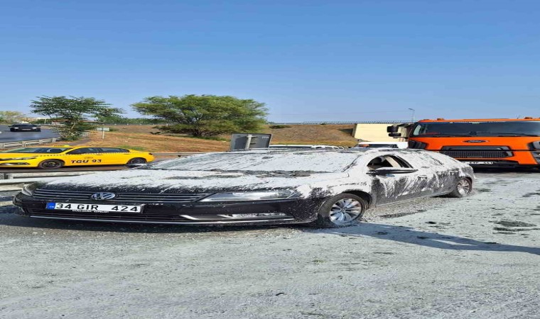 Olay saat 15.40 sıralarında Bayrampaşa ilçesi O-2 Bağlantı Yolu girişinde meydana geldi. Mehmet A. idaresindeki beton harcı yüklü 34 SY 4412 plakalı hafriyat kamyonu, bağlantı yoluna girdiği anda ani fren yaptı. Ani fren sonucu kamyonun dorsesinde bulunan beton harcı, arkasından gelen Derviş Korkut kontrolündeki 34 GIR 424 plakalı otomobilin üzerine döküldü. Camı kırılan aracın içerisine de beton harcı dökülürken, ihbar üzerine olay yerine polis ekipleri sevk edildi. Öte yandan kazada yaralanan olmadı.