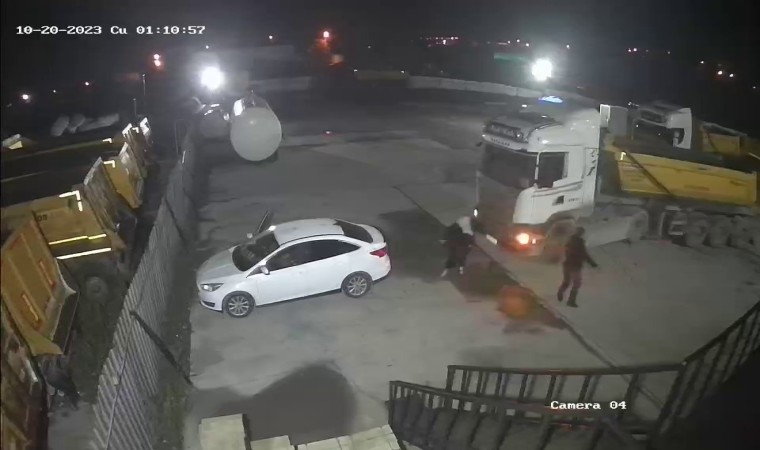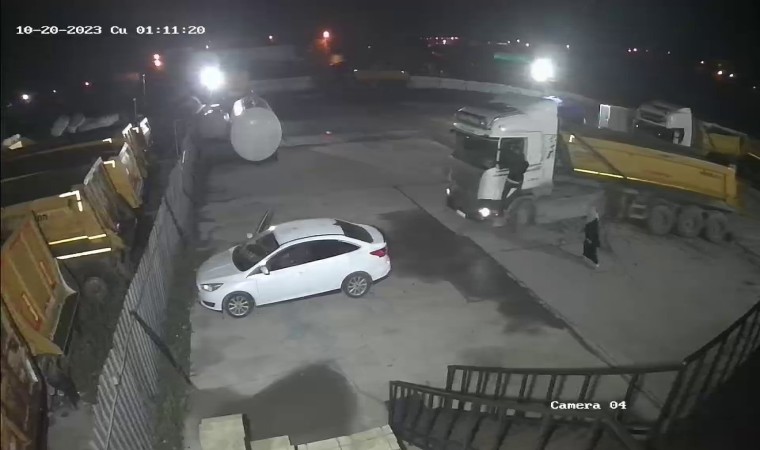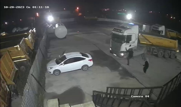 İstanbul’da gece meydana gelen olayda Sancaktepe Paşaköy tır garajından babasına ait hafriyat kamyonunu çalarak dehşet saçan 22 yaşındaki S.A’nın yeni görüntüleri ortaya çıktı. Dün gece yaşanan olayın ilk anlarında tır garajında bulunan bir güvenlik kamerasına yansıyan görüntülerde babasına ait hafriyat kamyonunu çalmaya çalışan S.A’nın kendisine engel olmak isteyen babası İ.H.A’yı darp ederek aracı anne ve babasının üzerine sürdüğü görüldü. Yaşanan bu dehşet anlarında uyuşturucunun etkisinde olduğu iddia edilen S.A, Sancaktepe’de bulunan tır garajından çalmaya çalıştığı hafriyat kamyonuyla kendisine engel olmaya çalışan anne ve babasını defalarca ezmeye çalıştı. Kamyonla ileri-geri manevralar yapan S.A, babasının kamyonun kapısına tutunmasına aldırış etmeden aracıyla kaçmaya çalıştı. yaşanan o dehşet anları güvenlik kamerasına saniye saniye yansıdı.