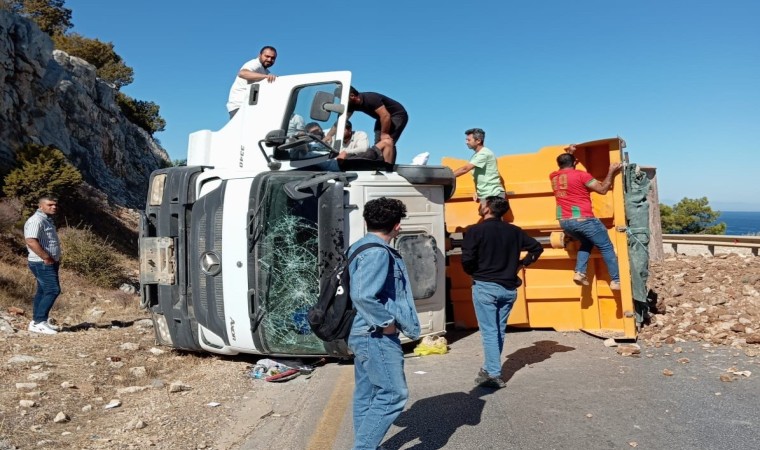 Muğla’nın Bodrum ilçesinde hafriyat kamyonunun devrildiği trafik kazasında 1 kişi yaralanırken, kaza nedeniyle yol 2 saat trafiğe kapandı.