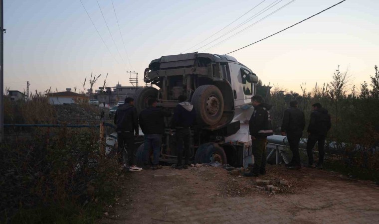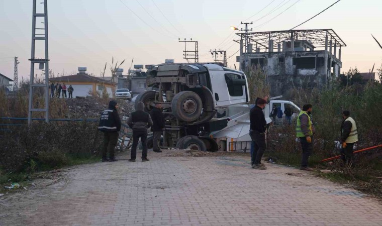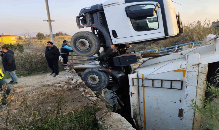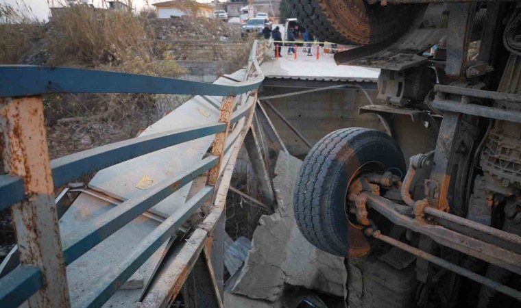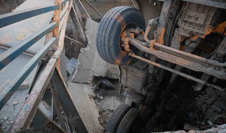 Hatay’ın Antakya ilçesinde hafriyat kamyonu, geçişi sırasında köprünün çökmesiyle dereye düştü.