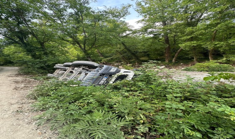 Sinop’un Ayancık ilçesinde hafriyat kamyonunun şarampole devrildiği kazada sürücü yaralandı.