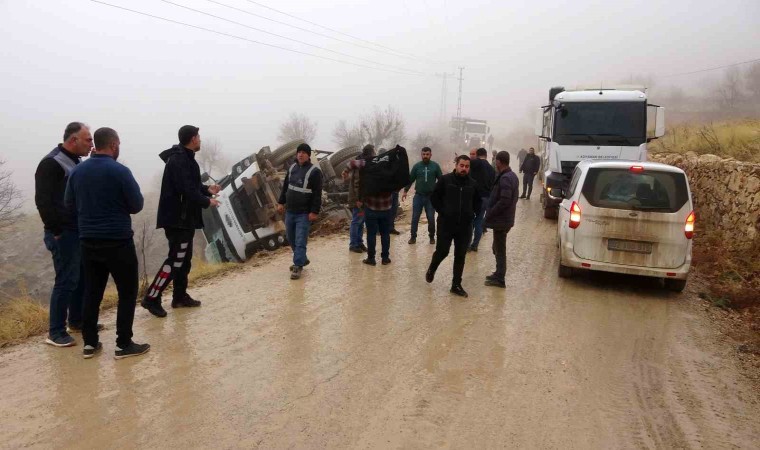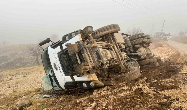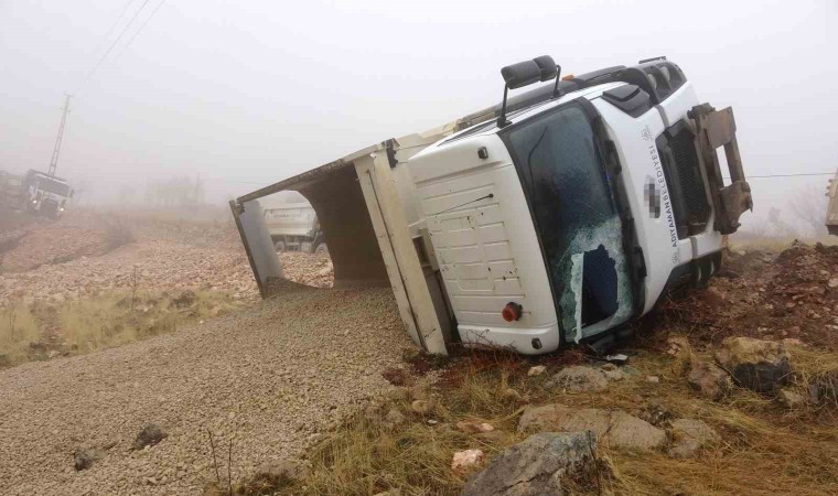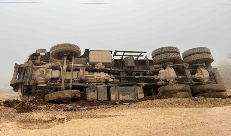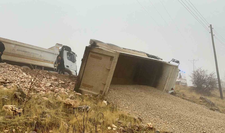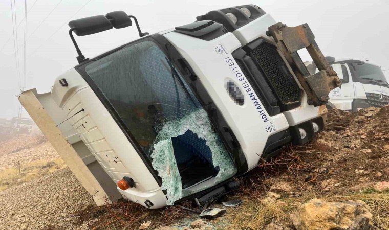 Adıyaman’da sürücüsünün direksiyon hakimiyetini kaybettiği hafriyat kamyonunun devrilmesi sonucu 1 kişi yaralandı. Kamyon içerisinde sıkışan sürücü, kırılan camdan güçlükle çıkarıldı.