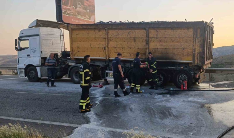 Kırıkkale’de seyir halindeki hafriyat kamyonunun lastikleri alev aldı. Olay yerine gelen itfaiye ekipleri, yangını kısa sürede kontrol altına alarak söndürdü.