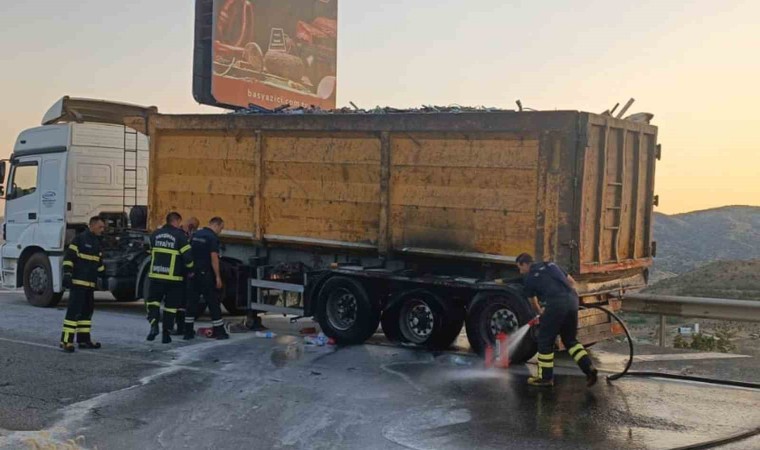 Edinilen bilgilere göre, H.K. idaresindeki 71 FN 495 plakalı çekiciye bağlı römorkun arka lastikleri, balatalarının ısınması sonucu alev aldı. Durumu fark eden sürücü, hemen aracını güvenli bir şekilde yol kenarına çekerek, itfaiye ekiplerine haber verdi. Kısa sürede olay yerine intikal eden ekipler, müdahale ettiği yangını kontrol altına aldı. Yangında araçta maddi hasar meydana geldi. Trafik ekiplerince bir süre araç trafiğine kapatılan karayolu, soğutma çalışmalarının ardından yeniden ulaşıma açıldı.