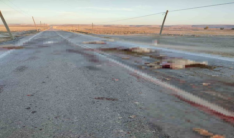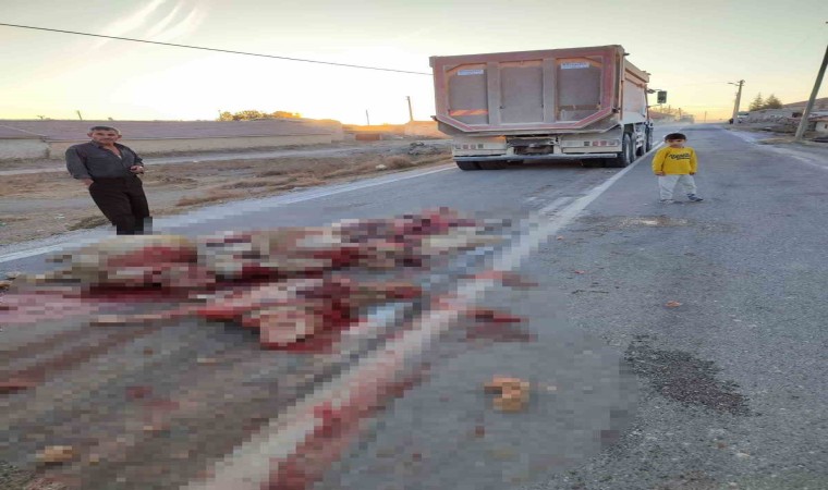 Eskişehir’in Günyüzü ilçesinde hafriyat kamyonu koyun sürüsüne çarptı, 13 koyun telef oldu.