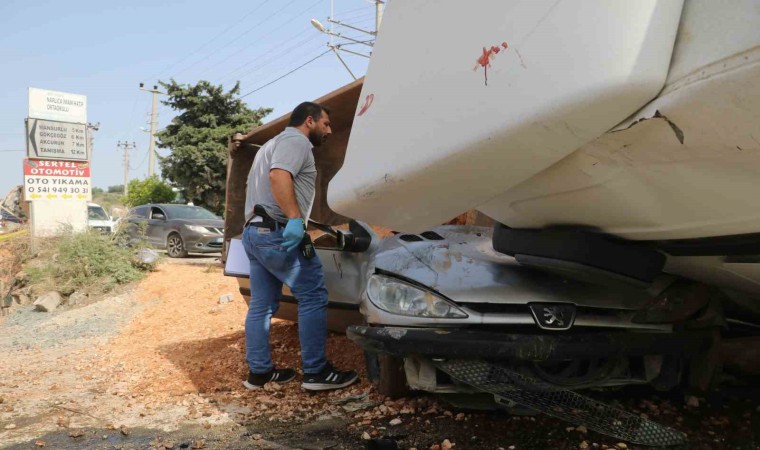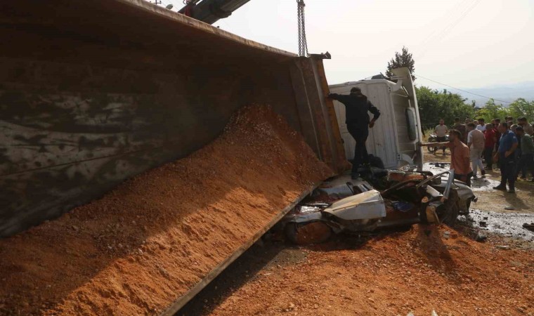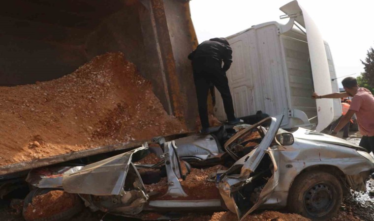 Hatay’da hafriyat kamyonu altında kalarak ezilen otomobilin sürücüsü yaralı olarak kurtarıldı. 4 aracın karıştığı kazada 4 kişi yaralandı.