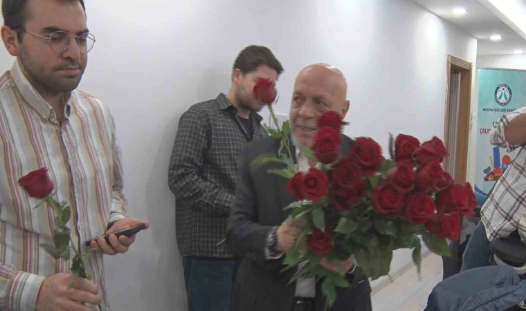 Arslan, konuşmasının ardından basın mensuplarına gül hediye etti.