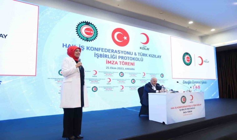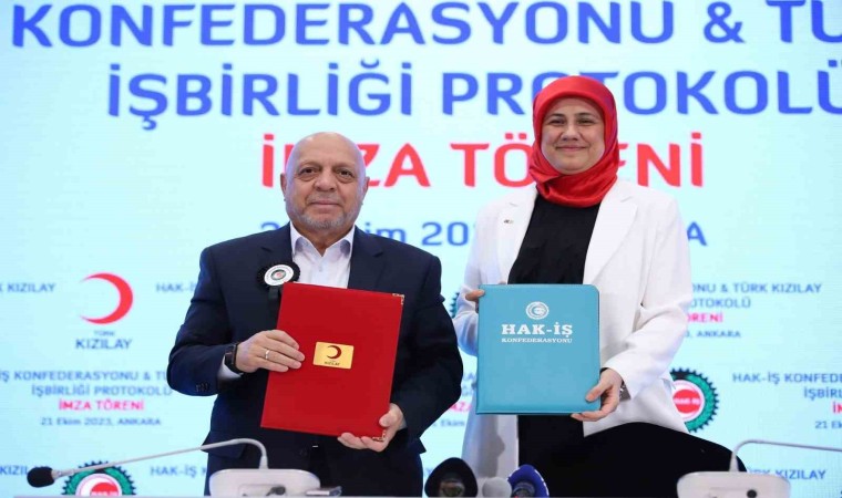 Öte yandan, Hak-İş Konfederasyonu ve Türk Kızılay arasında eğitim, afet, sosyal hizmetler ve kan bağışı konularında ortak yürütülecek faaliyetlere ilişkin bir işbirliği protokolü imzalandı. Kızılay Başkanı Fatma Meriç Yılmaz toplantıda, Hak-İş ile Kızılay’ın işbirliği yapabileceği konular hakkında bir sunum gerçekleştirdi.