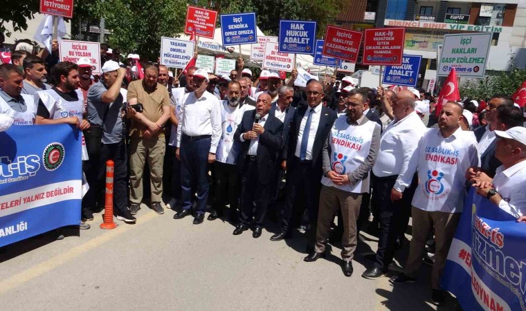 “Bu yanlıştan vazgeçin. Bu işçilerin emeğini, alın terini, hakkını, hukukunu düşünün. Bu süreler çabuk gelip geçer. Bir gün hesap günü gelir, hesabını da bu millet size sorar. Biz kavga etmek istemiyoruz. Gelin bu arkadaşlarımızın hepsini işe gönderin. Sürgünlerden vazgeçin. Herkes işine dönsün. İşini yapmayanlarla ilgili atacağınız her adımı destekleyeceğiz. Ama önce bu arkadaşlarımızı işe gönderin.”
