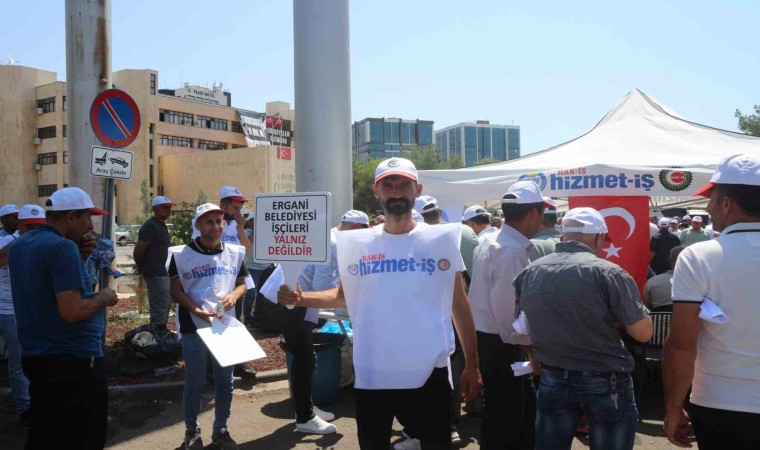 31 Mart Mahalli İdareler Genel Seçimleri’nden sonra yönetimi değişen Diyarbakır Büyükşehir Belediyesi ve bazı ilçe belediyelerinde işten çıkarılan işçilerin nöbeti devam ediyor. HAK-İŞ Genel Başkanı Mahmut Arslan, Diyarbakır Büyükşehir Belediyesi binasının yanında kurdukları çadırda eylemlerine devam eden sendika üyeleri ve bazı belediyelerde işten çıkarılan işçileri ziyaret etti. Bazı illerdeki sendika üyelerinin de destek verdiği ziyarette konuşan Arslan, işçilerin ideolojik nedenlerle işten çıkarıldığını söyledi. Diyarbakır Büyükşehir Belediyesi başta olmak üzere Sur, Kayapınar, Ergani, Bağlar, Yenişehir belediyelerinde 31 Mart’tan sonra yönetime gelen DEM Partili belediye başkanları tarafından üyelerinin işten çıkartıldığını ifade eden Arslan, “Belediyelerin bütün iddialarının hepsini çöpe atıyoruz. Bankamatik memuru diye suçluyorlar, bir tane arkadaşımızın bu konuyla ilgili yapılan soruşturmaları varsa, hakkında disiplin cezası uygulanmışsa bu söylediklerine hak vereceğiz. Bu arkadaşlarımızı ideolojik nedenlerle işten çıkardılar. Devletimizin çağrısına uyarak, dağdan kopup devletimizin şefkatli ellerine teslim olmuş Ayşegül Hanım’ın oğlunu Büyükşehir Belediyesi’nden hangi gerekçeyle attınız? Hangi suçu işledi? Sadece terör örgütüne karşı meydan okuyup devletin şefkatli kucağına teslim olduğu için işten çıkardınız. Şehit yakınlarını işten çıkardınız. Bunlar hangi suçu işlemiş? Sadece sizin köhne zihniyetinize sahip olmadıkları için bu arkadaşlarımızı işten çıkardınız” dedi.