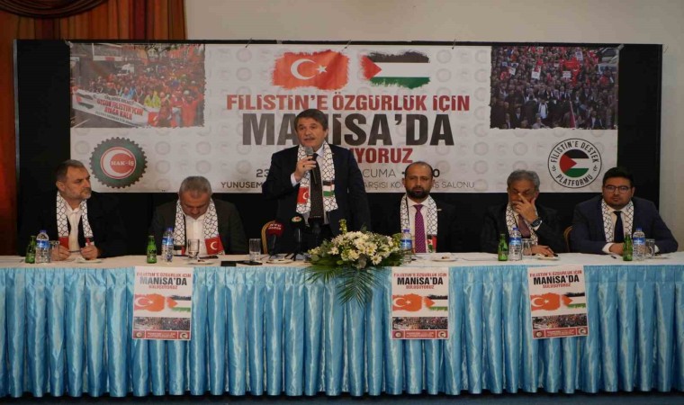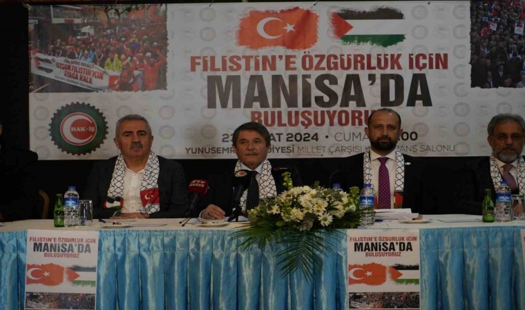 Manisa’da HAK-İŞ öncülüğünde sivil toplum kuruluşu temsilcilerinin de desteğiyle 23 Şubat Cuma günü düzenlenecek “Filistin’e özgürlük için Manisa’da buluşuyoruz” etkinliği ile ilgili basın toplantısı düzenlendi. Toplantıda sivil toplum kuruluşlarından Cuma günü gerçekleştirilecek etkinliğe destek verilmesi ve vatandaşları etkinlik hakkında bilgilendirilmesi talep edildi.