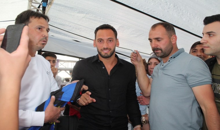 Sevenlerine imzalı forma hediye etmek ve formalarıyla gelen hemşehrilerinin formalarını imzalamak isteyen Çalhanoğlu, kalemi eline alır almaz bir arbede yaşandı. Forma imzalatmak isteyen Bayburtlu vatandaşlar adeta birbirlerini iterek imzalı forma yarışına girdiler. Ailesiyle birlikte Çalhanoğlu bulunduğu alandan uzaklaştırılarak güvenli bir alana alındı. Orada da kalabalık gurubun rahat vermediği Çalhanoğlu ailesi daha sonra belediye ve valilik ziyareti için Saray Bahçesi’nden ayırdılar. Ziyaretlerini yoğun kalabalık nedeniyle gerçekleştiremeyen Çalhanoğlu, belediye ve valilik ziyaretlerini başka bir güne erteleyerek, baba ocağı Konursu köyüne hareket etti.