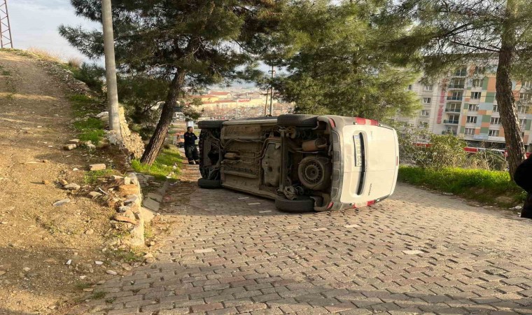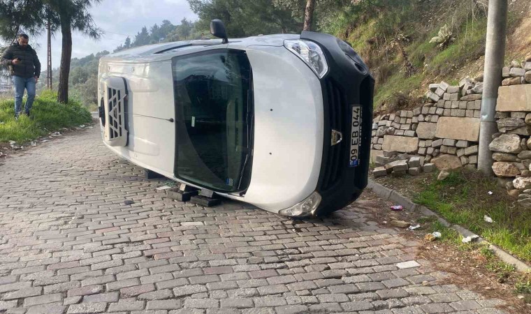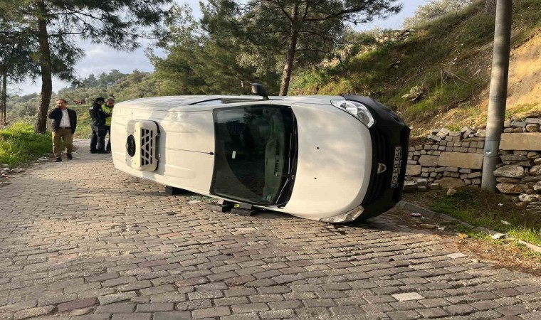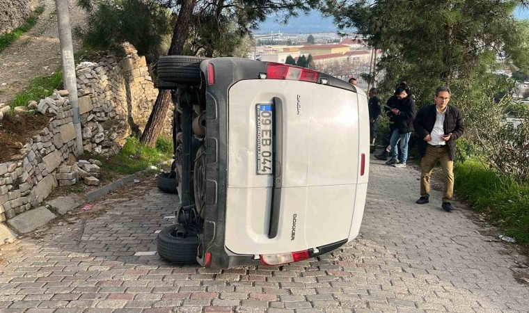 Aydın’ın Efeler ilçesinde kontrolden çıkan ticari araç, savrularak yan yatarken kazada bir kişi yaralandı.