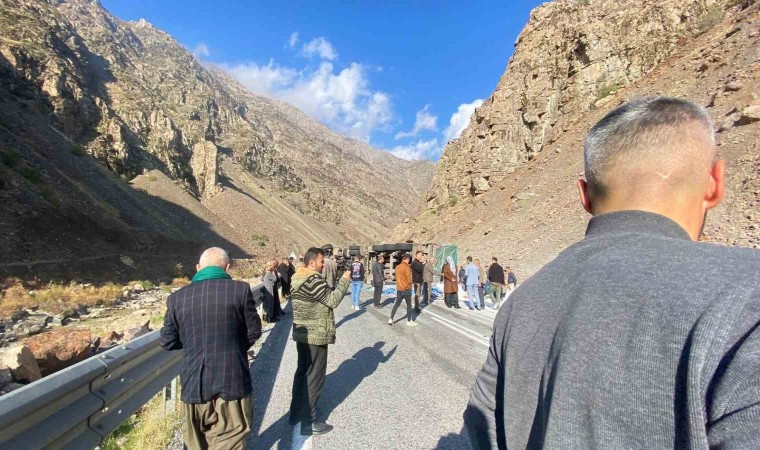 Hakkari-Çukurca karayolunda un yüklü bir tırın devrilmesi sonucu 1 kişi yaralandı.