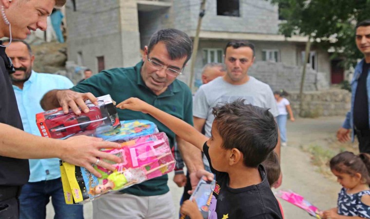 Kent merkezindeki ziyaretleri esnasında kendilerini selamlayan çocuklarla da bir araya gelen Yılmaz, çocuklara çeşitli hediyeler verdi.