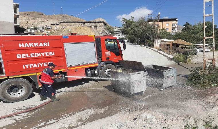 Hakkari Belediyesi İtfaiye Müdürlüğü ekipleri, kentin birçok noktası ile okulların önlerini tazyikli suyla yıkadı.