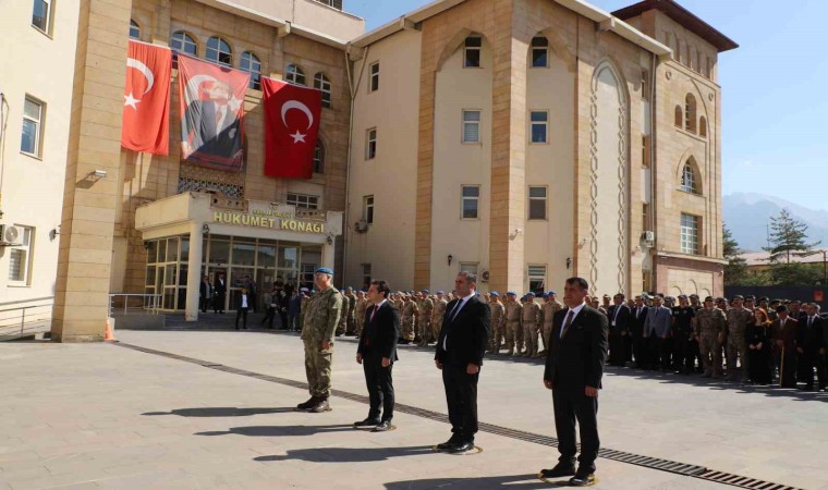 Hakkari Valiliği önünde düzenlenen programda Vali Vekili Buğra Karadağ, Dağ ve Komando Tugay Komutan Vekili Piyade Albay Yalçın Özpınar, Belediye Başkan Yardımcısı Hamit Zibek, Türkiye Harp Malulü Gaziler, Şehit, Dul ve Yetimleri Derneği Hakkâri İl Temsilcisi İbrahim Adıyaman tarafından Atatürk büstüne çelenk sunulmasının ardından saygı duruşunda bulunularak İstiklal Marşı okundu. Teğmen Muhammed Merki tarafından günün anlam ve önemine ilişkin yapılan konuşmanın ardından tören sona erdi.