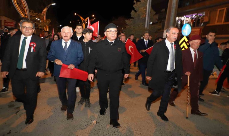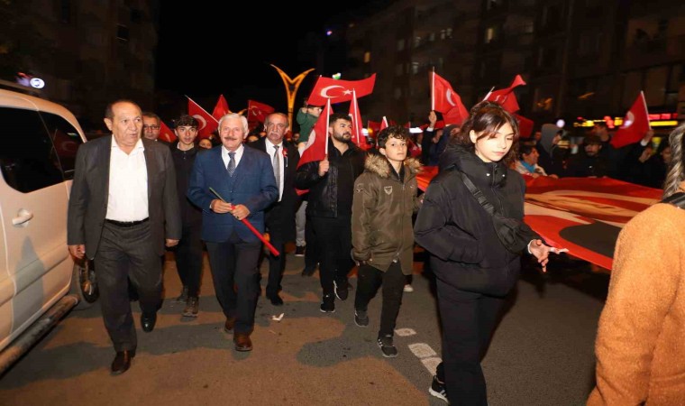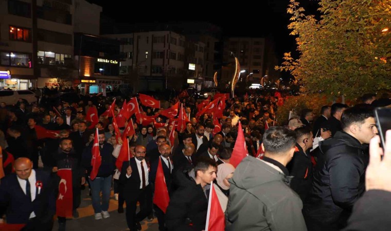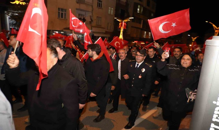 Dev Türk Bayrağı ve Atatürk posterleri eşliğindeki yürüyüş valilik önünde havai fişek gösterisi ile sona erdi.