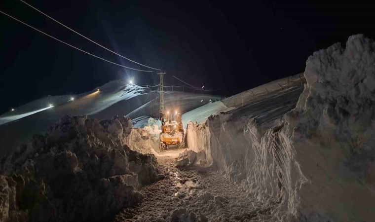 Hakkari İl Özel İdaresi ekipleri, kar kalınlığının yer yer 4 metreyi bulduğu askeri üs bölgelerindeki yolları açmak için çalışmalarını sürdürüyor.