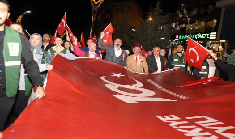 Pagan Caddesi üzerinde toplanan binlerce vatandaşlar, protokol üyelerinin gelmesi ile birlikte ellerindeki Türk bayrağı ve meşalelerle marş okuyarak yürüyüşe geçti. Renkli görüntülere sahne olan ve yaklaşık 2 kilometre yürüyüşe yaklaşık 2 bin kişi katıldı. Cumhuriyet Caddesi üzerinde bulunan Valilik önünde dilek fenerlerinin uçurulması ile birlikte yürüyüş sona erdi. Vali Çelik, etkinliğe katılanlara teşekkür ederek, Cumhuriyet Bayramlarını kutladı.