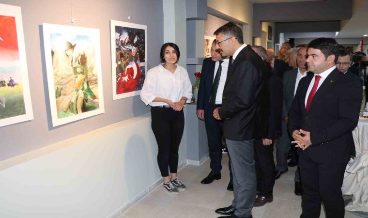 Cumhuriyetin 100. yılına ithaf edilen resim sergisinin açılışına Vali ve Belediye Başkan Vekili Ali Çelik ve protokol üyeleri katıldı. Neşe Dinç Ünal, Resmegül Saygı, Aynur Tümyürek, Burak Eroğlu ve Erdi Gür gibi öğretmenlerden oluşan resim bölümü zümresi ile 32 öğrencinin görev aldığı sergide; akrilik, guaj ve suluboya teknikleri ile yapılan 32 eser, il protokolünü ve misafirleri tarihi bir yolculuğa çıkardı. Nene Hatunların, Sütçü İmamların, Hasan Tahsinlerin ve Seyit Onbaşıların kahramanlıklarını farklı perspektiflerle yeniden canlandırılan resimler, kemanda İbrahim Kıvrak ve gitarda İlknur Keleş adlı öğretmenlerin çaldıkları klasik müzik eşliğinde protokol üyeleri tarafından tek tek dikkatle incelendi.