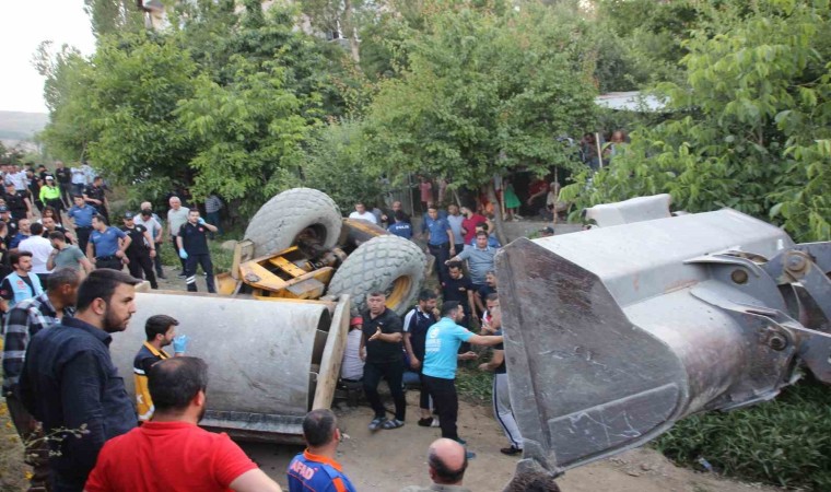 Hakkari’de kontrolden çıkarak devrilen iş makinesinin altında kalan çocuk yaralandı.