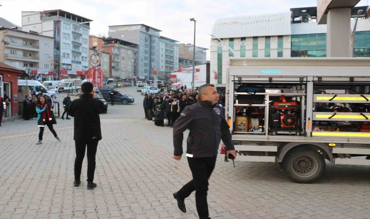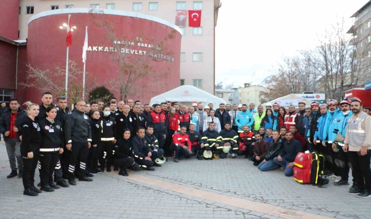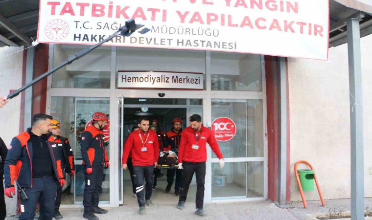 Hakkari Devlet Hastanesi’nde, hastane yönetimi ve personelleri başta olmak üzere 112 Acil Servis, Ulusal Medikal Kurtarma Ekibi (UMKE), Hakkari Afet ve Acil Durum (AFAD) Müdürlüğü, Vangölü Elektrik Dağıtım A.Ş. (VEDAŞ), Hakkari İl Emniyet Müdürlüğü ile Hakkari Belediyesi İtfaiye Müdürlüğü ekiplerinin katılımıyla, ’2023 yılı Hastane Afet ve Acil Durum Planları Uygulama Yönetmeliği’ çerçevesinde ’Masabaşı ve saha’ tatbikatı gerçekleştirildi. Senaryo gereği yangın, deprem ve tahliye konuları ele alındı. Deprem sonrası çıkan yangında bölgeye sevk edilen ekipler, hastanede tahliye işlemlerine başladı. Polis ekiplerinin güvenlik önlemlerinin ardından binaya giren AFAD, UMKE, itfaiye ekipleri, deprem sonrası çıkan yangında etkilenen hasta ve yakınlarını kurtardı. Bir yandan hasta tahliyesi yapılırken, bir taraftan da çıkan yangına müdahale edildi. Yaralılar, hastane bahçesinde kurulan sahra hastanesinde yapılan ilk müdahalenin ardından ambulanslarla hastaneye ulaştırıldı.