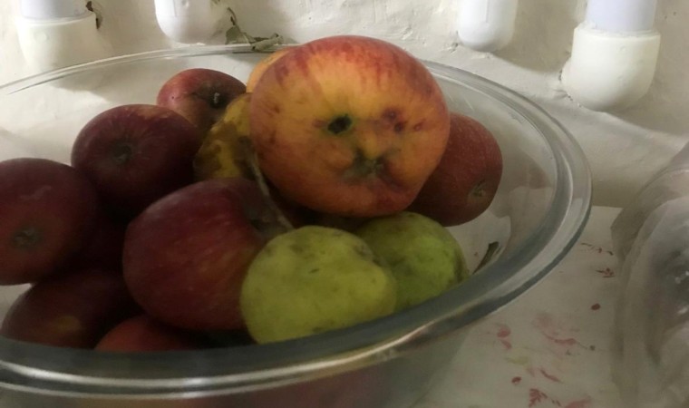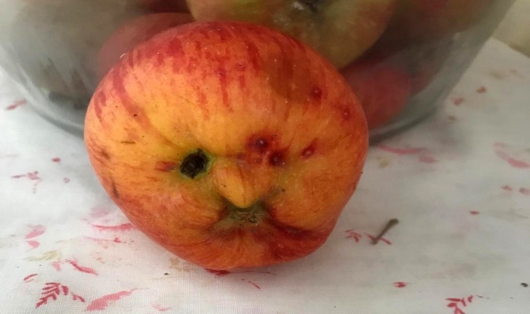 Hakkari’de insan yüzü görünümündeki elma, görenleri hayrete düşürüyor.