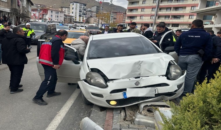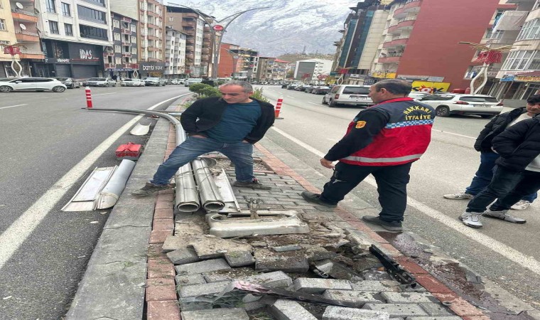 Hakkari’de direksiyon hakimiyetini kaybeden bir sürücü aydınlatma direğine çarparak durdu.