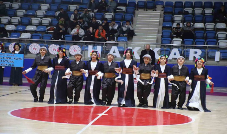 Kapalı Spor Salonunda düzenlenen halk oyunları il birinciliği yarışmasına minikler, yıldızlar ve gençler kategorisinde 13 okul katıldı. Kıyasıya geçen yarışmada okullar bir birinden güzel performans gösterdi. Halk Oyunları Federasyonu Yönetim Kurulu üyesi ve Hakkari Temsilcisi Sıdkı Zerek, tüm okullara başarılar dileyerek, emeği geçen eğitmenleri birer plaket ile ödüllendirdi. Bütün etkinliklerde olduğu gibi halk oyunları yarışmasında da büyük emeği olan Halk Eğitim Merkezi Müdürü Nazif Tatlı’ya Mili Eğitim Müdürü Nurettin Yılmaz ve Gençlik ve Spor İl Müdürü Emin Yıldırım tarafından plaket takdim edildi.