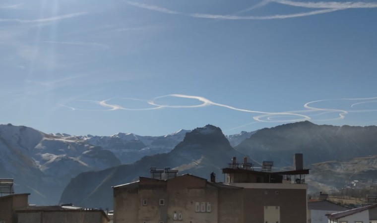 Hakkari’de sabah saatlerinde Bay köyü ve Sümbül dağı yakınlarında uçakların gökyüzünde daireler çizerek bıraktığı izler ilginç görüntüler oluşturdu. Yaklaşık 3,5 saat süreyle Hakkari semalarında yaşanan ilginç olayı izleyen vatandaşlar, yaşananlara anlam veremedi.