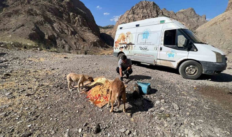 Hakkari Belediyesi Veteriner İşleri Müdürlüğü ekipleri, kuduz hastalığına karşı sokak hayvanlarını aşılıyor.