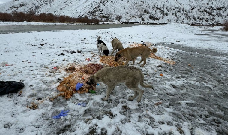 Hakkari Belediyesi ekipleri, yiyecek bulmakta zorlanan sahipsiz hayvanların imdadına yetişti.