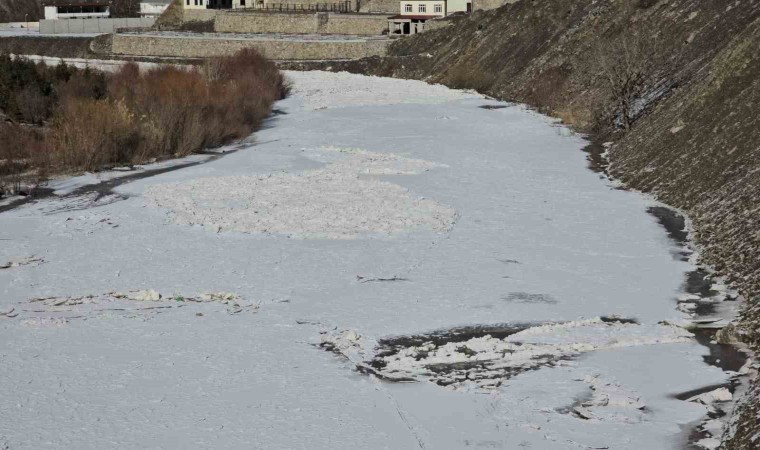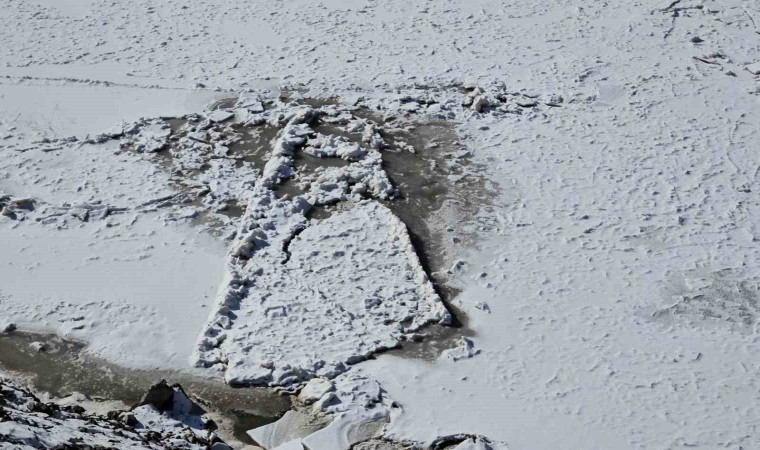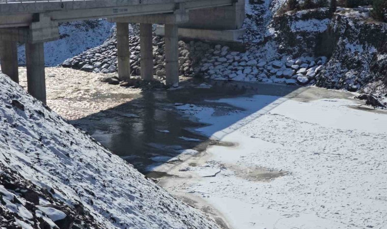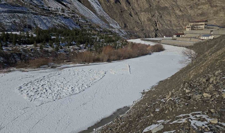 Hakkari’de etkili olan soğuk hava nedeniyle Zap Suyu’nun yüzeyi buzla kaplandı.
