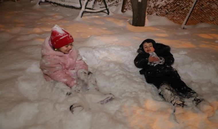 Hakkari’de akşam saatlerinde etkisini arttıran kar yağışı sonrasında dışarı çıkan çocuklar, aileleri ile birlikte karın tadını çıkardı. Kimisi kızak kayarak kimisi de karın içine uzanarak eğlenen çocuklar, tatilin keyfini çıkardı. Bu sene kar yağışının geç geldiğini belirten çocuklar, bu nedenle doya doya kaymanın tadını çıkarttıklarını söylediler. Yokuş aşağı kayan çocuklar, yere sert düşmelerine rağmen kaymanın keyfini doyasıya yaşadılar.
