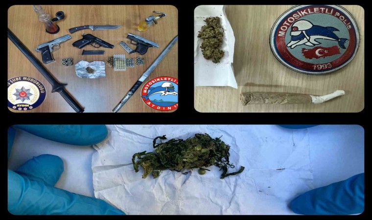 Aydın İl Emniyet Müdürlüğü Asayiş Şube Müdürlüğü ekipleri halkın huzur ve güvenini sağlamak için çalışmalarını aralıksız sürdürüyor. Asayiş Şube Müdürlüğü Aranan Şahıslar Büro Amirliği ve Motosikletli Yunus Timleri son günlerde yaptıkları çalışmalarla göz doldurdu. Edinilen bilgiye göre ekipler yaptıkları çalışmalarda; aralarında hırsızlık suçundan 24 yıl cezası olan E.D, yine hırsızlık suçundan 15 yıl cezası olan V.Y, Silahla tehdit suçundan 12 yıl cezası olan U.E, uyuşturucu madde suçundan 10 yıl cezası olan T.G ile birlikte toplam 80 aranan şahsı kıskıvrak yakaladı. Yapılan uygulamalarda; 6 adet ruhsatsız tabanca, 112 adet fişek ve toplam 24 şahıstan değişik miktarlarda narkotik maddeler ele geçildi. Öte yandan 1 adet çalıntı motosiklet de bulundu.