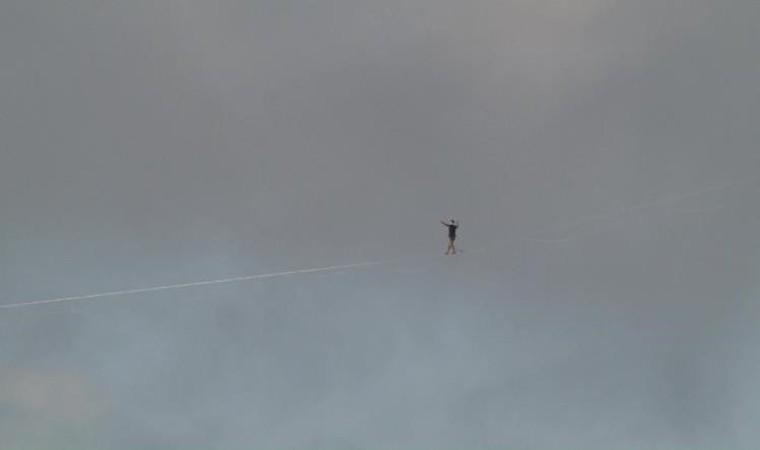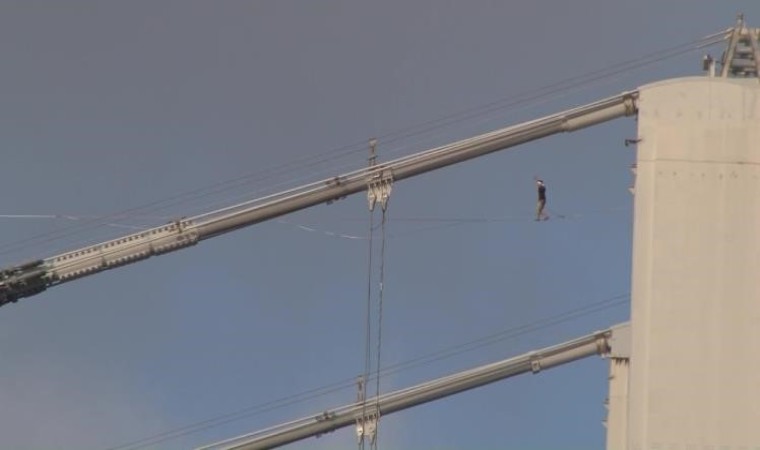 Estonyalı akrobat Jaan Roose, İstanbul Boğazı’nda 15 Temmuz Şehitler Köprüsü üzerinde Asya’dan Avrupa’ya halat üzerinde yürüyerek geçerken vatandaşlar o anları ilgiyle izledi.