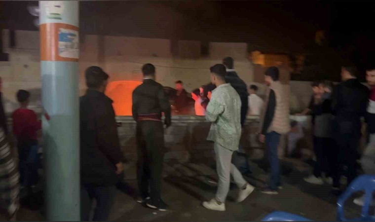 Şanlıurfa’nın Ceylanpınar ilçesindeki bir düğüne katılan davetlinin alev alan otomobili, diğer davetliler tarafından söndürüldü.